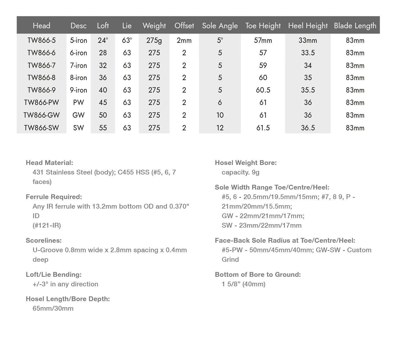 · Traditional GW and SW profile shapes are combined with milled faces and a custom sole grind make the wedges a great choice even if they were standalone wedges and not part of the single length design